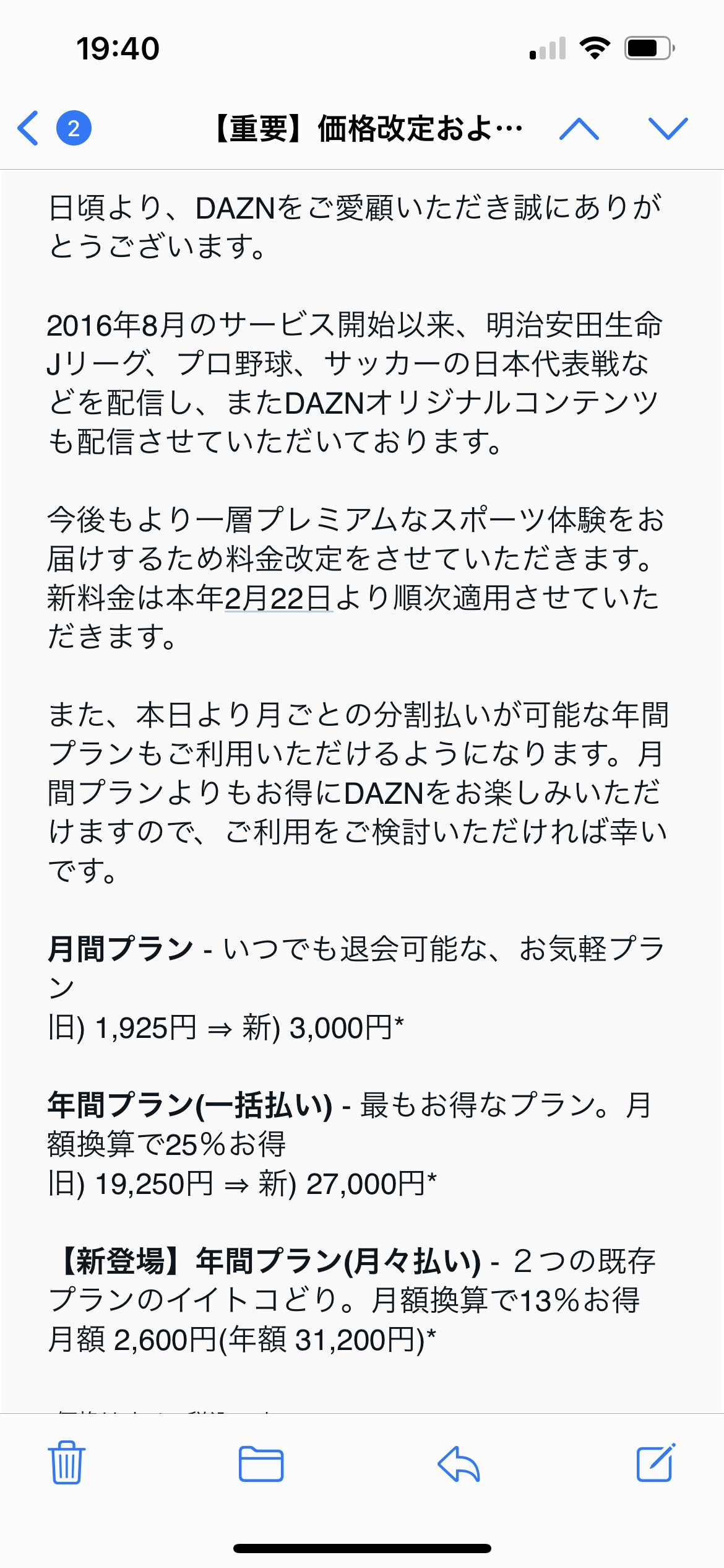 Dazn 値上げ 2月から月額1925円 3000円に 詳細は後日発表する 1 2 ページ Itmedia ビジネスオンライン